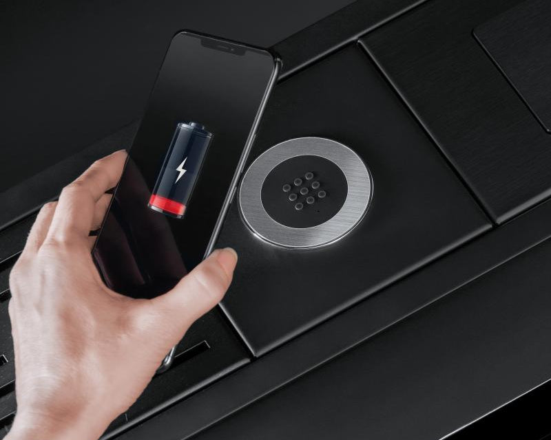 Dostupan u obe čelične završne obrade, ovaj modul koristi tehnologiju elektromagnetne indukcije za bežično punjenje tvogg pametnog telefona. Jednostavno ga postavi na centralni krug da bi se započeo proces punjenja, koji se odvija u brzinom jednakom kao kod tradicionalnih žičnih punjača. (Kompatibilno sa pametnim telefonima koji podržavaju bežično punjenje).
