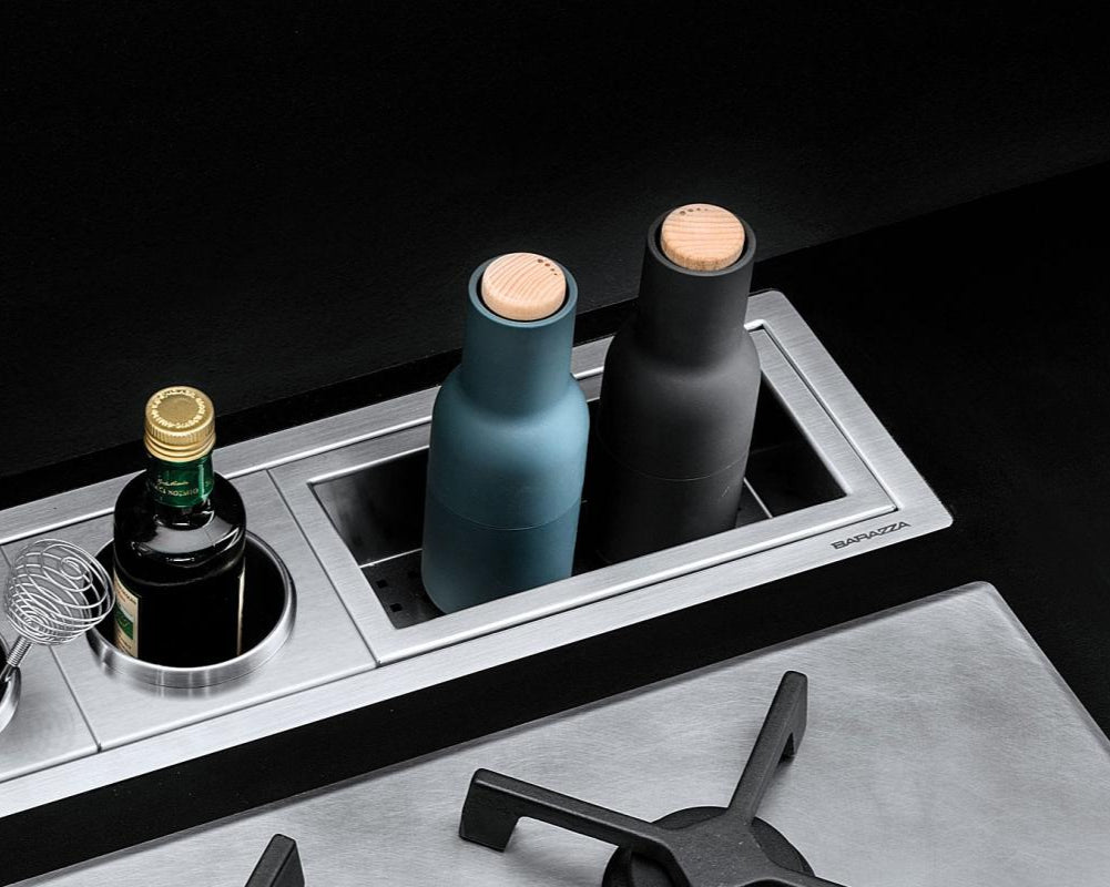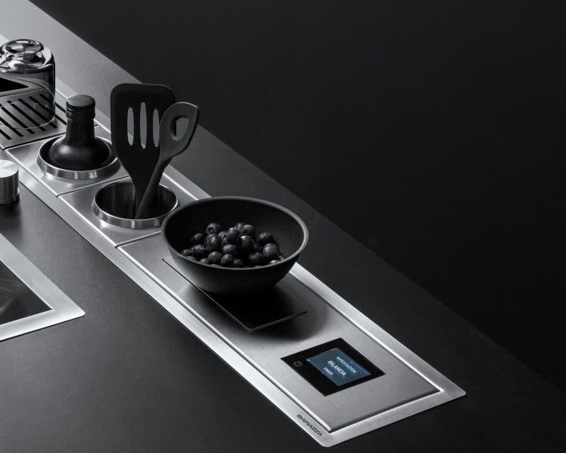 Ne baš obična vaga, već pravi asistent u radnoj ploči.. Pored funkcija merenja, sa mogućnošću podešavanja različitih mernih jedinica, funkcija tare i sabiranja, opsegom merenja od 0 do 20 kg, vaga se može povezati sa Barazza aspiratorima, postajući njihov daljinski upravljač, ali i postati prekidač bilo kojeg od svetlosnog izvora u kuhinji, integrišući funkcije uključivanja i isključivanja. Da bi se upotpunila funkcionalnost proizvoda, postoje dva različita sistema za merenje vremena, sposobna da funkcionišu istovremeno: prvi je tradicionalni tajmer, drugi je multitajmer sposoban da kontroliše više vremenskih intervala istovremeno. Vaga je dostupna u obe čelične završne obrade i može se konfigurisati na 5 jezika (italijanski, engleski, španski, nemački i francuski).