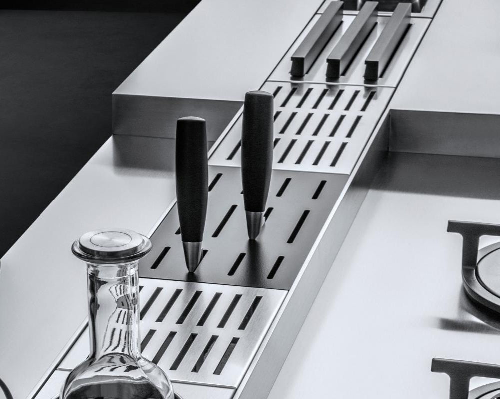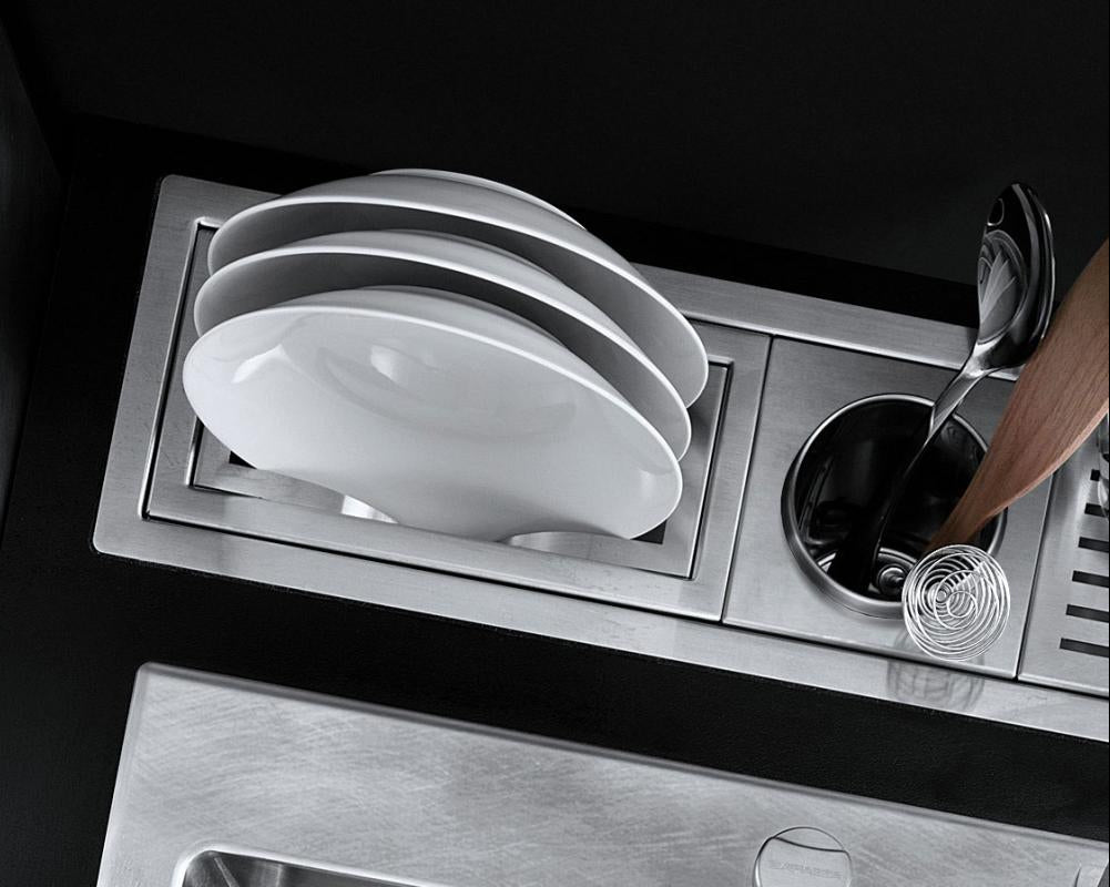 Nudimo kompletan asortiman sudoperskih kanala za kuhinje od nerđajućeg čelika velike debljine, dizajniranih da upotpune efikasnost i praktičnost radne ploče, pružajući mesto za sve i optimizujući pokrete tela u blizini zone za pranje i kuvanje. Prostorije opremljene sistemom sudoperskih kanala imaju oceđivače za čaše, držače za flaše, oceđivače za sudove, držače za električne utičnice, držače za daske za sečenje i police. Sloboda kompozicije: Možete birati i raspoređivati elemente kako želite, kako biste komponovali kanal na način koji najbolje odgovara vašim potrebama. Jedina mera predostrožnosti koju treba preduzeti je da se električni elementi ne postavljaju u područja koja su u direktnom kontaktu sa vodom.